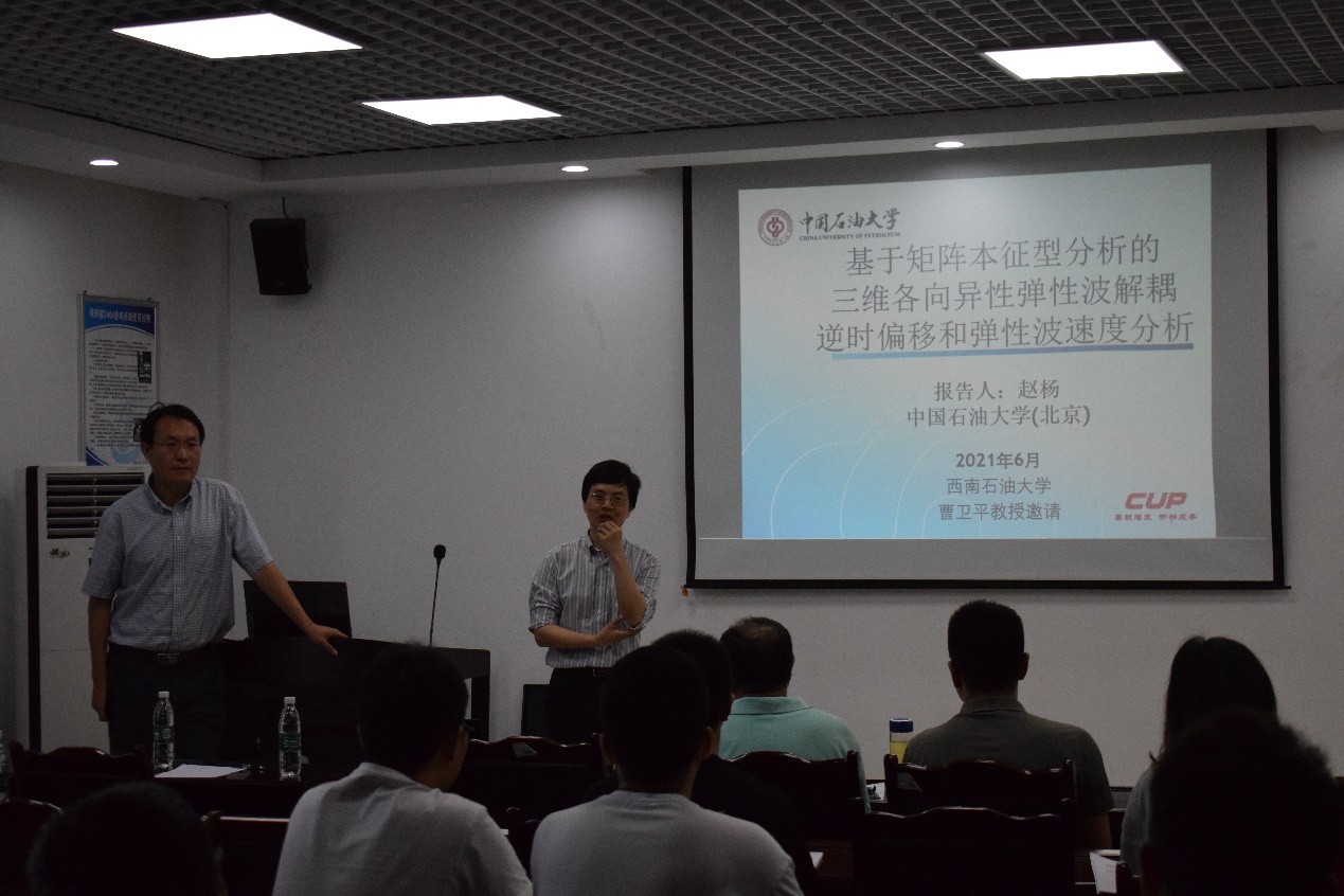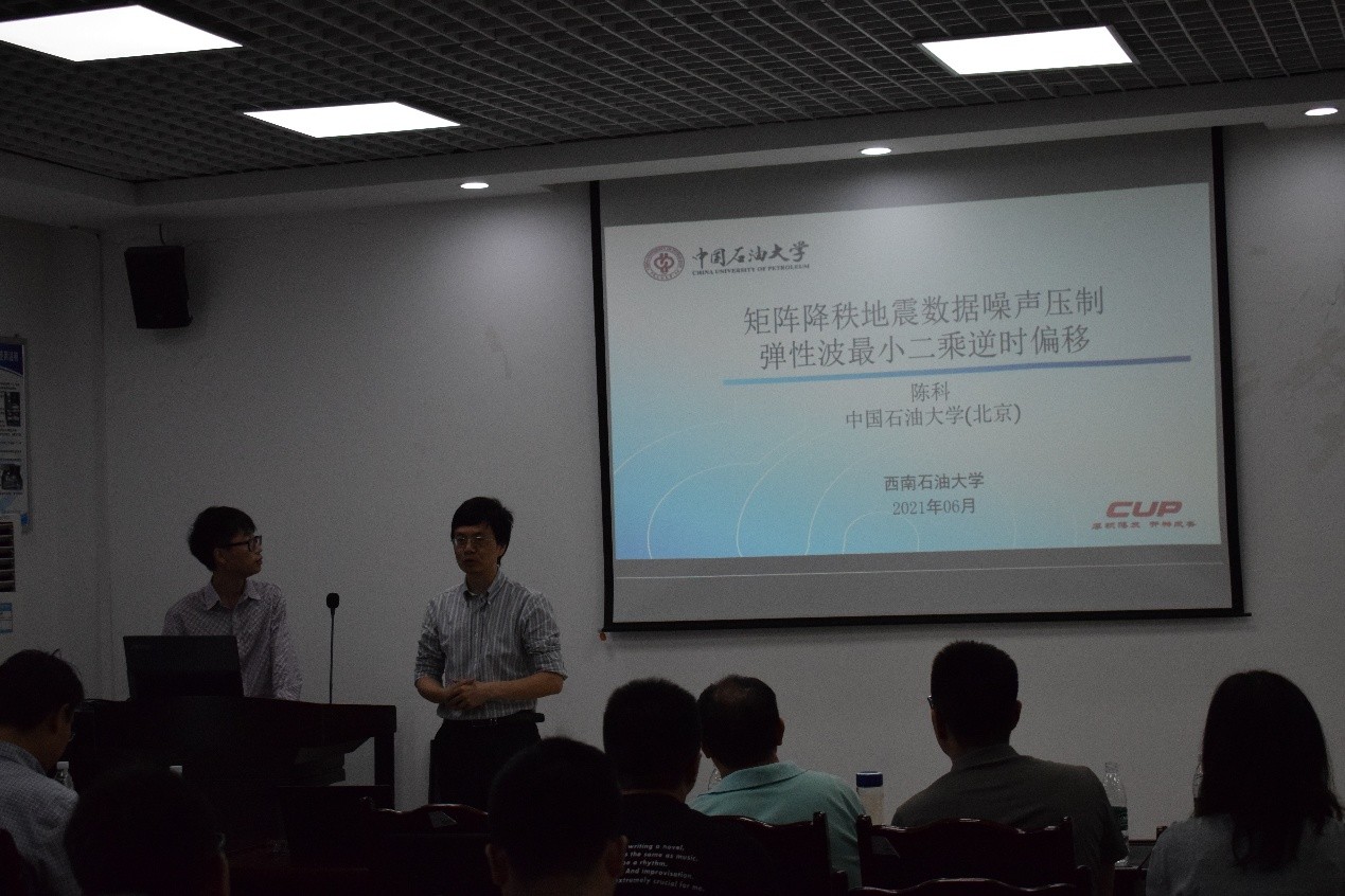 6月10日上午10:00,中国石油大学(北京)赵杨教授、陈科助理研究员2位老师在明辨楼D404进行了题为《各向异性TTI弹性波快速解耦逆时偏移和偏移速度分析》、《矩阵降秩地震数据噪声压制和弹性波最小二乘逆时偏移》的专题报告。我院教师曹卫平教授出席并主持了本次报告会,地科院硕博研究生积极参加此次讲座,会议室气氛热烈。