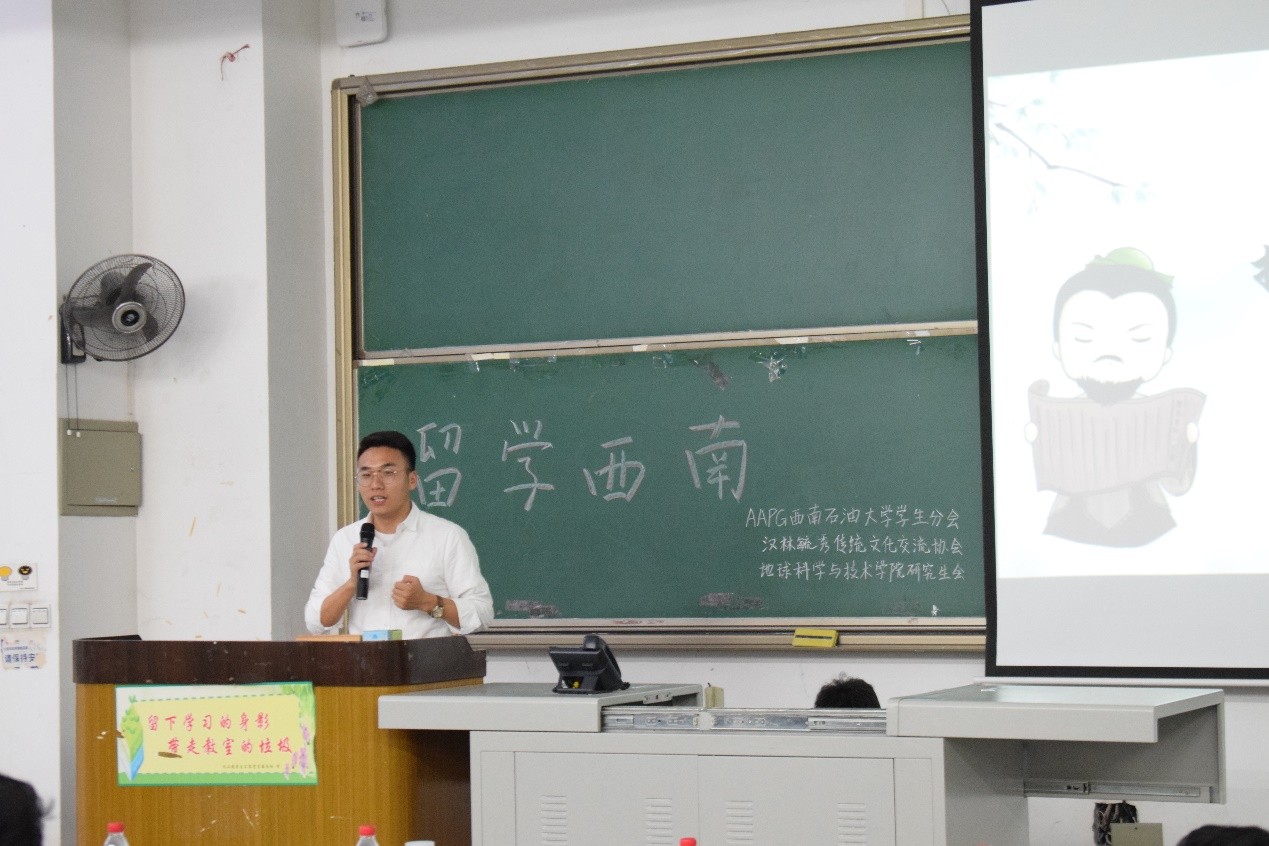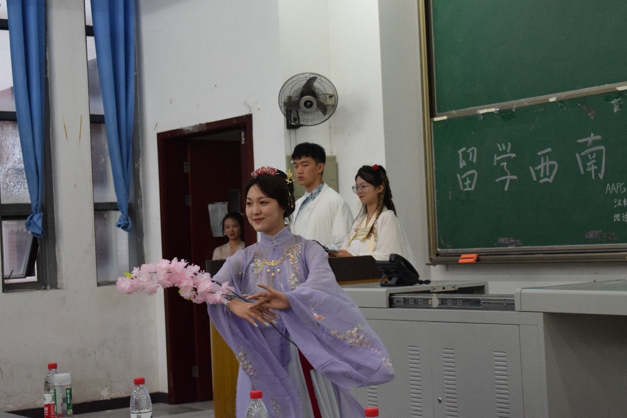 为丰富国际留学生的校园文化,积极推广中国文化,展现中华民族服饰的独特魅力,6月17日晚上七点,由地科院主办,AAPG西南石油大学学生分会、汉林毓秀传统文化交流协会和地科院研究生会承办的“赏秀丽华服,品中华礼韵——文化交流互动体验项目”在明德楼A312顺利开展,地科院团委副书记欧阳田出席此次活动。