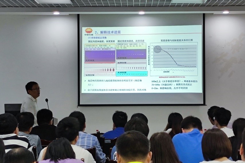6月17日晚上19:00,但光箭高级工程师在明辨楼D404进行了题为《塔里木盆地碳酸盐岩解释技术进展》的专题报告。本次报告会由我院刘宏副院长主持,彭军教授和周路教授均出席了此次会议,我院研究生积极参加学习,整个教室气氛热烈。