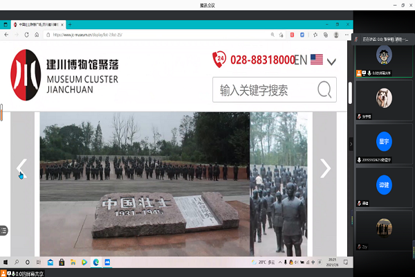 7月7日下午,“加一队”实践队,以腾讯会议远程投屏的形式,在队长蒋俊汐的带领下浏览网站,走进建川博物馆,通过一幅幅生动的照片,去聆听和感知,思考与评判,去触碰历史的脉搏,聆听历史的声音。