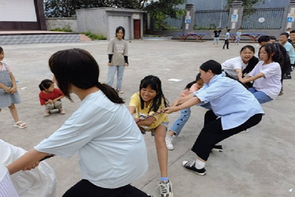 六年级和五年级作为高年级组,比赛项目有乒乓球、呼啦圈、拔河和八人接力赛。在拔河项目中,各个年级都派出了八个男生八个女生迎战。每个人都卯足了劲地将绳子往自己班的方向拽,青涩的脸庞上满是激情,渴望为班级争得荣誉。