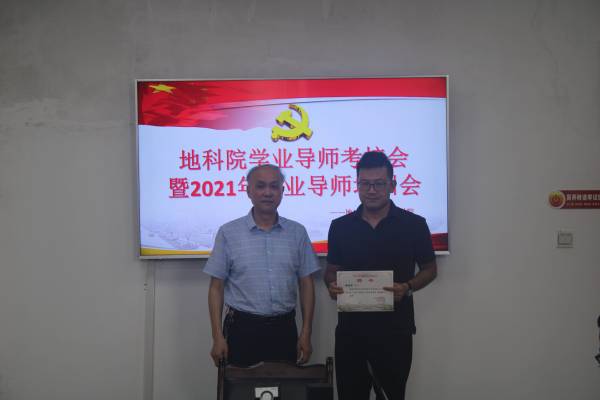 会议伊始,朱江书记为2021级学业导师颁发了聘请书并与导师们合影留念。随后,范书记简单阐述了召开此次会议的目的并宣布考核答辩开始。紧接着,2019、2020级的导师们有序的进行工作考核答辩。