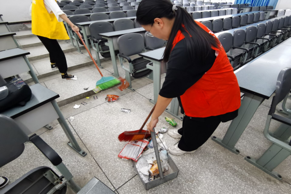 本次打扫的重点主要是明辨楼c区一楼至四楼的楼梯和教室卫生。首先,在工作人员的指导下,志愿者们先在明辨楼C区集合,并分配工具。在准备工作做好以后,同学们有序地进入教学楼进行打扫,同学们用扫帚清扫楼梯的灰尘以及教室里的垃圾,以及用拖把清洁地面,在同学们的共同清扫下,整个教学楼变得焕然一新。