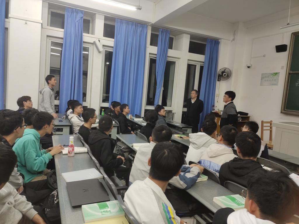接下来,黄旭日教授和尹成教授对SEG做了简单的补充介绍,并开展了座谈会答疑,同学们积极发言、踊跃提问,一问一答间,同学们对SEG学会、对地球物理领域有了更加深入的了解。