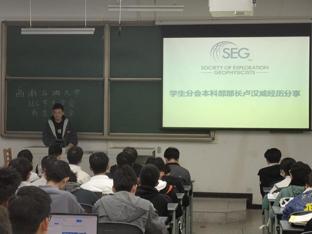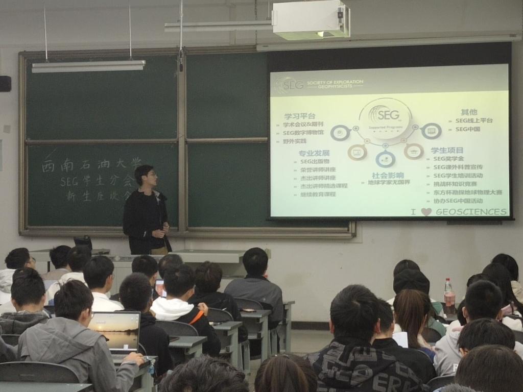 11月2日晚上七点,西南石油大学SEG学生分会于明辨楼C105开展了面向2021级勘查技术与工程以及地质资源与地质工程新生的座谈会。本次座谈会由西南石油大学SEG分会主持,SEG中国区执行理事黄旭日教授、SEG学生分会指导老师尹成教授以及SEG学生分会成员出席了此次座谈会。