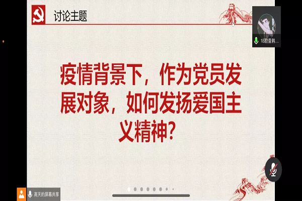 针对近期疫情反复,经李民老师和两位小组组长研究讨论决定第二次讨论以“疫情背景下,作为党员发展对象,如何发扬爱国主义精神”为主题展开。