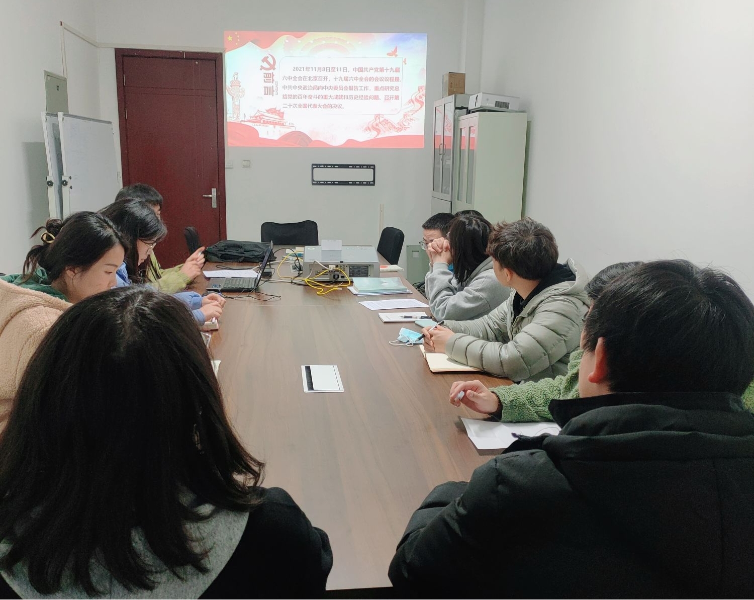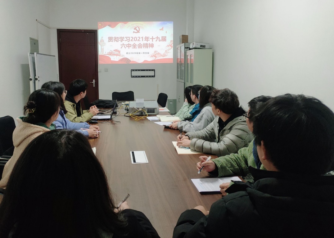 2021年11月26日,地球科学与技术学院硕2020级第一党支部于明辨楼A410开展了本年度秋季学期专题学习会,此次会议由支部书记马学才主持,共11名同志参加。本次会议主要学习了《中国共产党第十九届中央委员会第六次全体会议公报》的精神内涵,支部及时共享了相关学习资料,组织全体同志进行学习并交流心得体会。