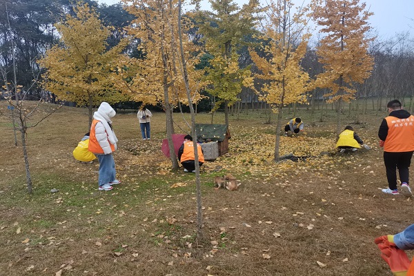 志愿者清理落叶