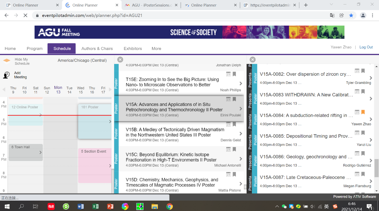 12月14日-15日,我院油气区构造解析研究团队博士研究生杨率与赵亚汶顺利参加2021年美国地球物理学会秋季会议(AGU Fall Meeting)。受目前疫情的影响,本次会议采取线上与现场结合的形式举行。两名同学积极响应国家防疫政策,会议全程选择在线上进行。