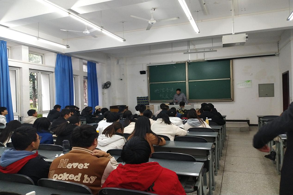在五位师兄师姐分享完后,两位老师组织他们分散坐在教室里,让同学们自主上前交流提问。同学们踊跃提问,学长学姐耐心回答同学们的疑惑,交流会气氛活跃,每位同学的积极性都非常的高。