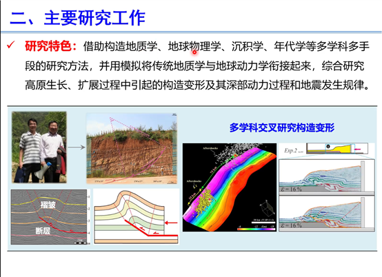 会议初始,饶刚老师介绍了本次会议的主讲人。李志刚副教授,西南石油大学校友,目前于中山大学地球科学与工程学院开展教学和研究工作,主要从事青藏高原周缘构造变形和海域活动断裂研究。紧接着,李志刚老师从龙门山和川西地区多期构造变形特征及其模拟研究的相关内容切入主题,重点介绍了三个研究进展,一是确定单个构造变形样式和活动性;二是确定深部结构和扩展过程;三是强震孕震模型。会议最后,李志刚老师根据提问,与参会师生探讨了在沙箱模拟龙门山向四川盆地扩展的过程中,龙门山中生代构造格架对新生代拓展模拟的影响,以及该地区岩性和地表剥蚀速率对断层活动强度和应变过程是否有影响等问题,充分开拓了同学们的学术视野,大大激发了参会人员的科研活力,对相关领域的发展具有重要作用。