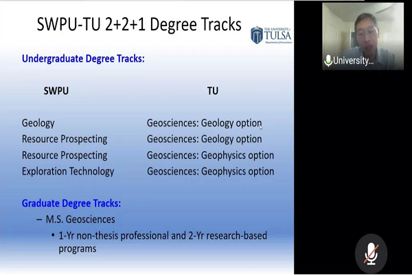 为增进同学们对留学项目的了解,提高深造比率,营造良好学风,地科院于2022年1月10日在腾讯会议线上举行了“塔尔萨大学与西南石油大学本科 2+2+1 合作项目宣讲会”。