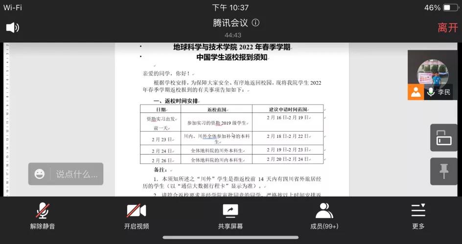 2022年2月7日,地科院2019级召开了线上年级大会。本次大会由辅导员李民老师主持,地科院2019级全体同学参加。会议着重讲解了开学时间及返校的相关事项。