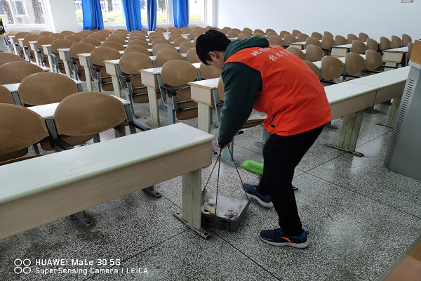 本次打扫的重点主要是思学楼a区一楼至三楼的楼梯和教室卫生。首先,在工作人员的指导下,志愿者们先在思学楼a区大厅集合,并分配工具。在准备工作做好以后,同学们有序地进入教学楼进行打扫,同学们用扫帚清扫楼梯的灰尘以及教室里的垃圾,以及用拖把清洁地面,在同学们的共同清扫下,整个教学楼变得焕然一新。