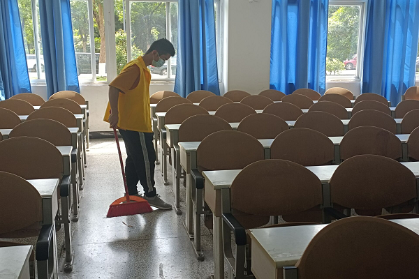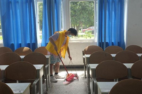 本次打扫的重点主要是思学楼A区一楼至三楼的楼梯和教室卫生。首先,在工作人员的指导下,志愿者们先在思学楼A区集合,分配工具。在准备工作做好以后,同学们有序地进入教学楼进行打扫,同学们用扫帚清扫楼梯的灰尘以及教室里的垃圾,以及用拖把清洁地面,在同学们的共同清扫下,整个教学楼变得焕然一新。