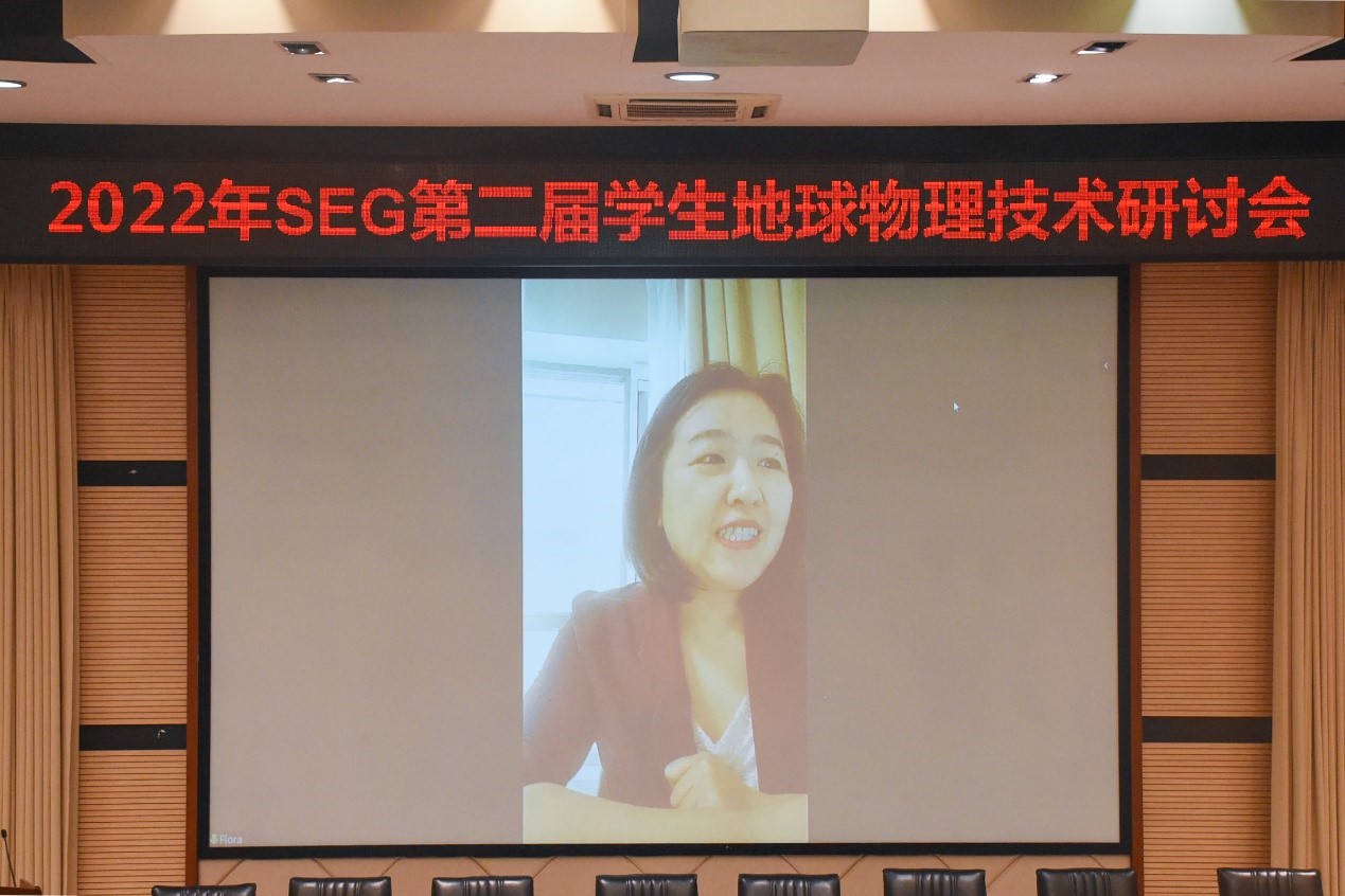 为落实疫情防控政策,会议采用线下、线上相结合的方式开展。会议伊始,西南石油大学SEG学生分会主席代月对会议做简要的介绍并分享个人心得,其后通过视频的形式别开生面展现了SEG国际事务理事Tom Agnew对本次大会举办所传达的衷心祝贺,紧接着由SEG中国执行理事、西南石油大学地科院院长黄旭日教授作开幕致辞,黄旭日教授介绍了SEG学生研讨会的发展历程,对学生分会的工作表示了支持与肯定,并鼓励更多的同学积极参与学术会议。