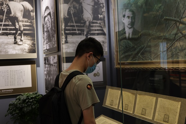 图为参观朱德笔记