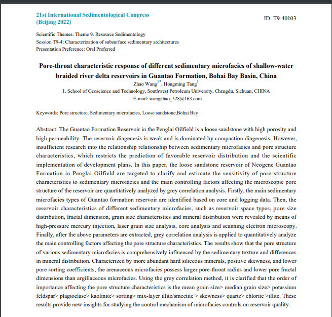 本次会议邀请了相关行业的多名专家做主题报告,此外来自国内各个高校和相关研究院的多名学者分别做了专题报告。参会者围绕“深时”古气候演化、碳中和与地质技术、自然灾害的沉积过程、生物与环境相互作用、沉积学与资源等主题开展学术交流。其中我院博士研究生王昭进行了展板展示,并与参会的专家学者积极探讨和交流。