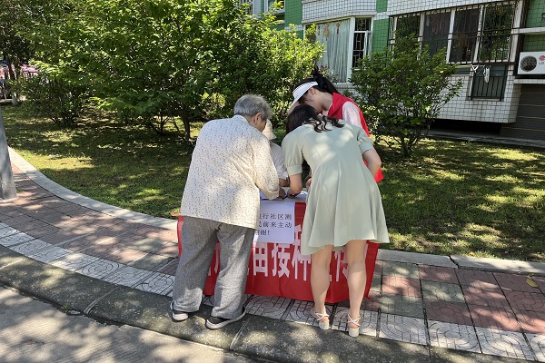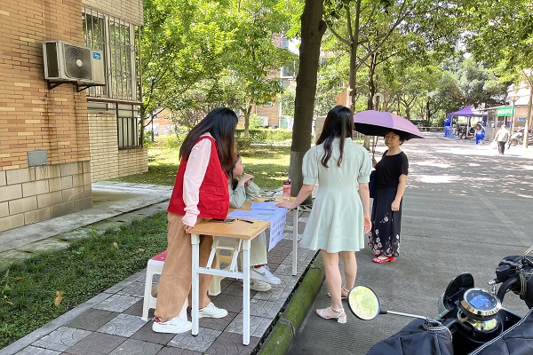 6月27日,青峰志愿队来到了西南石油大学乡城学府社区开展三下乡社会实践活动,在本次社会实践活动中,青峰志愿队的第一个任务是在社区各门口开展疫苗接种普查及社区活动评议宣传。队长首先制定了工作部署方案,全队七位队员,小区三个门各安排两位队员共同开展工作,另外一位队员负责后勤工作。天气十分炎热,来往的居民稀疏,大家积极与居民耐心沟通,了解疫苗接种情况,宣传社区活动评议,取得了良好的成果。