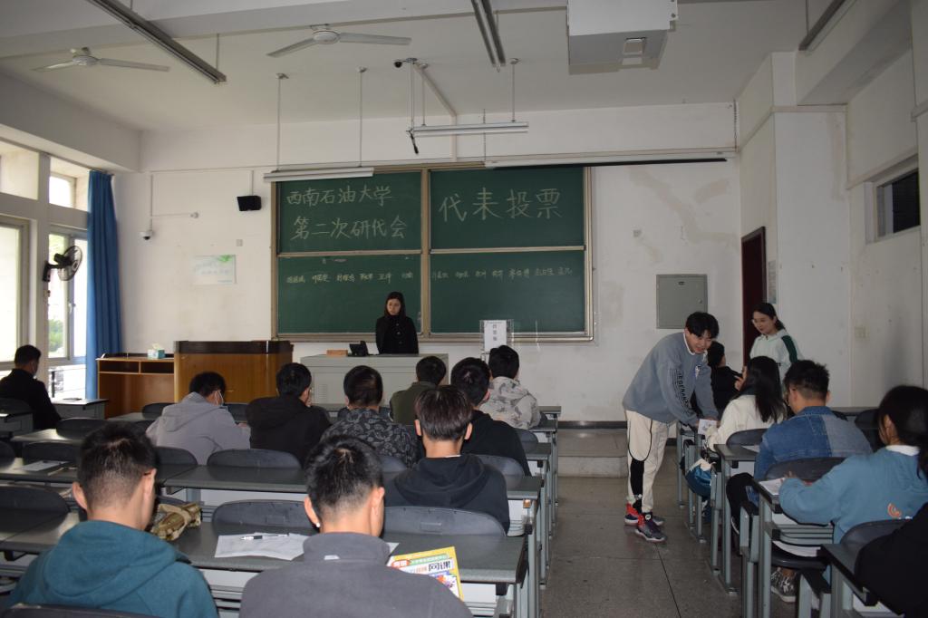 11月4日15:00,西南石油大学第二次研究生代表大会地科院代表选举会议于明辨楼C105正式召开。出席本次选举大会的老师有地科院辅导员王晨晨老师和史格老师。会议由刘瑜主席主持,以无记名投票的方式进行选举,共有十五位候选研究生参与到选举中,会议将从中选出十二位作为第二次研代会研究生代表。