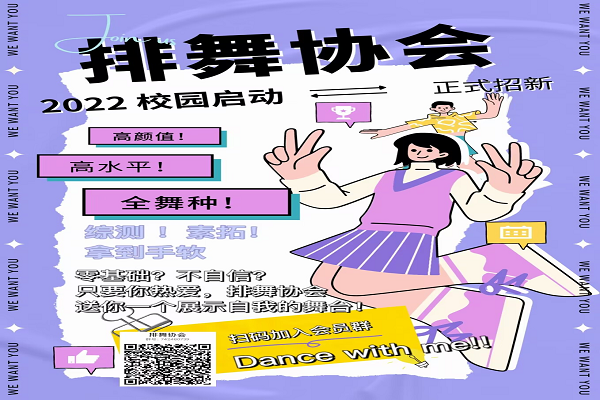 由于疫情防控,本次百团大战原则上一切从简,不摆放招新摊位。虽然如此,各个社团负责人的热情不曾衰减。除了线下发放海报、传单等宣传方式,排舞协会也在线上通过文字、视频等方式积极宣传,竭力展示自己的社团文化和特色活动。在此次百团大战中,排舞协会及各个协会也是出尽奇招。此外,排舞协会也与其他社团合作,共同宣传,达到了1+1大于2的宣传效果。