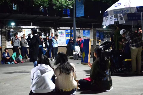当天,活动还未开始就已经有许多同学到达现场等待。之后大家围坐一团,打开手机闪光灯,人工制造了一场繁星,合唱了《夜空中最亮的星》,闪耀出了大家对音乐的热爱。