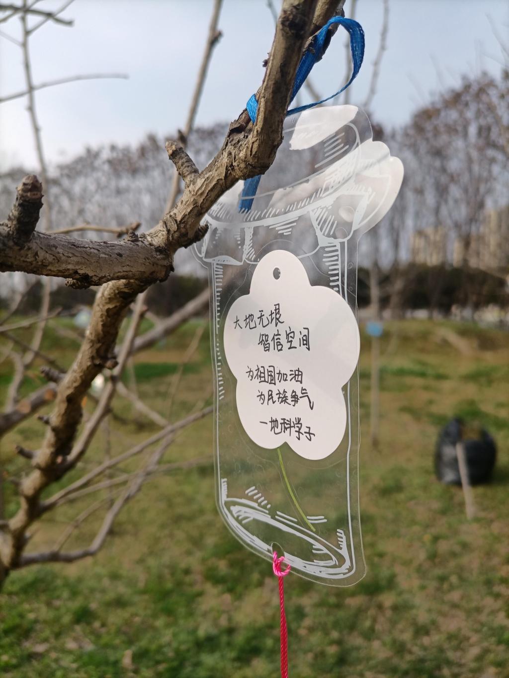 活动中,同学们各司其职,认真做好除草、浇水、锄地等感恩林的日常护养工作,除此以外,还充分利用“二十四节气”为基本时间点开展写祝福语活动,每个人都在努力贡献自己的一份力量。