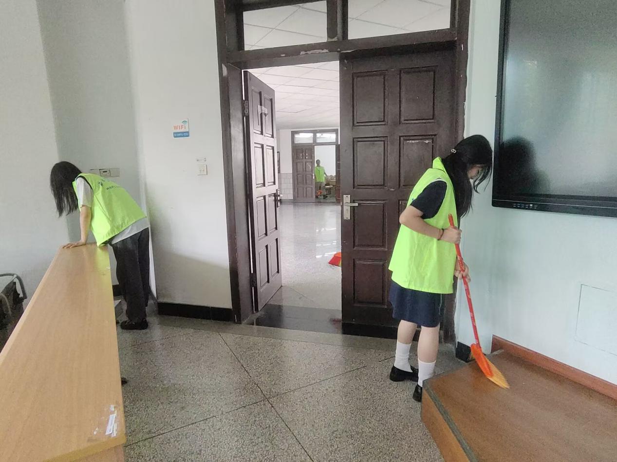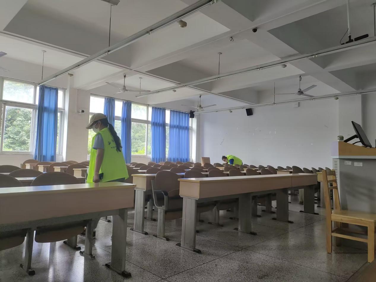 捡拾课桌里面的垃圾,整理讲桌,清扫过道......来来往往的人影,是志愿者们在有条不紊的进行清扫活动。挥动扫帚的每一次,都是对自我劳动意识的增强。地科院的学子们坚信劳动意识的重要性,坚持每周日常劳动,用实际行动让劳动意识永驻心间,用双手建设美丽校园!