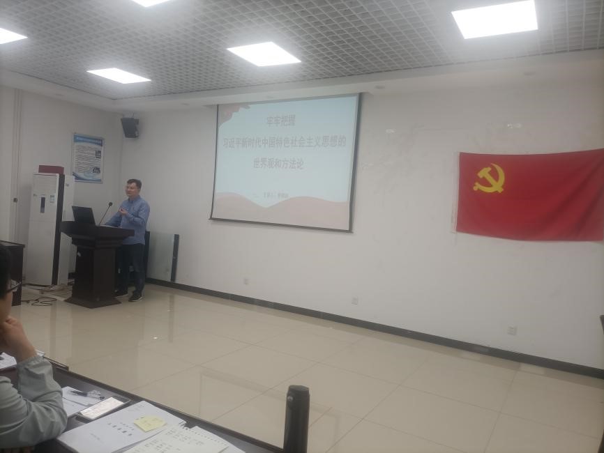 紧接着,在李明科老师的带领下,全体同志开展了“牢牢把握习近平新时代中国特色社会主义思想的世界观和方法论”主题教育学习。李老师首先向我们介绍了开辟马克思主义中国化时代化新境界。随后,李老师就开辟马克思主义中国化时代化新境界展开了讲解分析,指出“我们党勇于进行理论探索和创新,以全新的视野深化对共产党执政规律、社会主义建设规律、人类社会发展规律的认识,取得重大理论创新成果,集中体现为习近平新时代中国特色社会主义思想。”