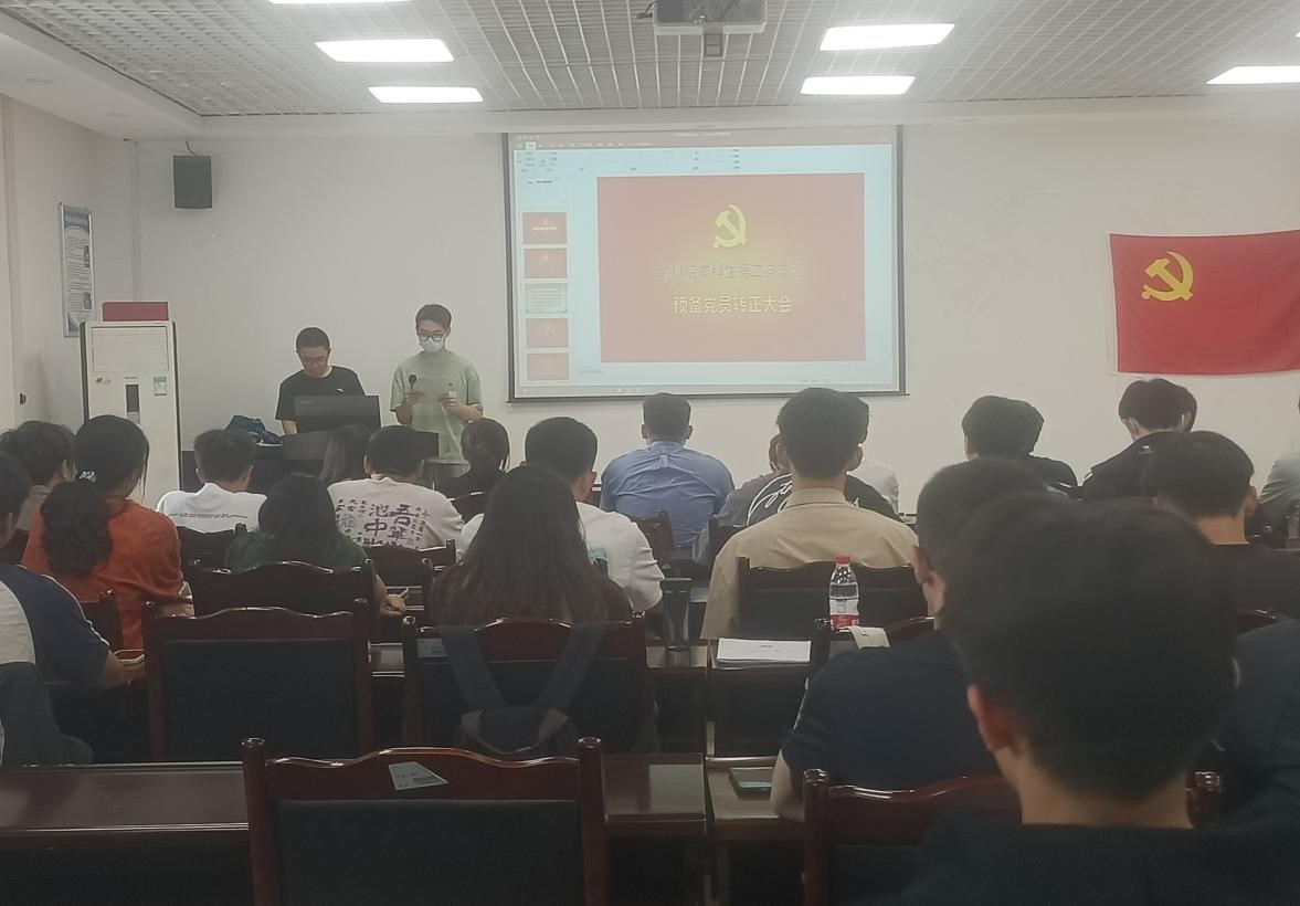 大会伊始,支部副书记李青洋介绍了出席人数、大会流程等,之后宣读了转正人员名单,潘广宇等14名同志相继汇报预备期间自己在思想、生活、工作等各方面的情况,向组织提出转正申请。接下来考察人介绍申请转正人员在预备期间的表现并发表意见。经过支部大会充分讨论,在场有表决权的正式党员8票全票通过了14名预备党员的转正申请。随后,12名发展对象逐一介绍自身情况,阐述入党动机,介绍人就其是否符合党员条件发表意见。经与会中共党员投票表决,大会一致同意接收沈旭康等12名同志为中共预备党员。在申请人发言中,各位同志针对自身存在的不足明确了努力方向,表示将进一步加强学习,努力工作,勇于担当,充分发挥一名共产党员的先锋模范作用。