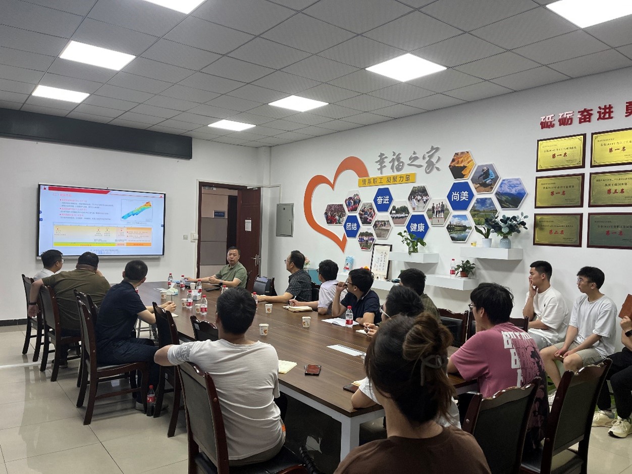 本次交流开始前,路俊刚同志强调:“为了给地质学科的发展注入新鲜血液,就要学习先进技术与研究思路。”随后,西南油气田勘探开发研究院副院长张本健以四川盆地深层碳酸盐岩勘探实践与启示为题,川西北龙门山山前带双鱼石栖霞组勘探为例进行了深入的学习交流。张本健副院长为党支部和团队成员讲解了在勘探开发中的一些新思路与创新性的先进技术,在会议中指出“作为地质学科的学生,要广泛学习各种研究方法及其研究软件,要多去野外实践”,提出“多思考、多实践”的工作学习精神,给予了党支部和团队成员在科研上的极大的启发。