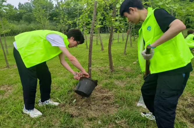 积极报名活动的志愿者们在明辨楼C区大厅有序集合,工作人员进行统计人数与任务分配。活动开始后,志愿者们依据分工,一部分同学松土,一部分同学拔草,剩下的同学则为小树苗们浇水。每一位同学都在认真地完成自己的分工任务,为维护感恩林贡献自己的力量。活动当天恰逢六一儿童节,志愿者们充满活力,干劲十足,在大家的辛勤劳动下,感恩林也变得鲜活了起来。