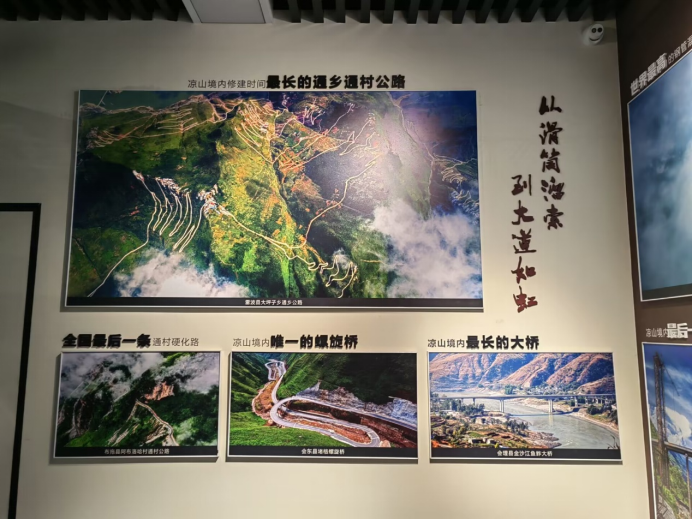 听了张抗老师的讲述,再去看展览,悬崖村的藤梯与钢梯,因修建阿布洛哈通村公路而坠落悬崖的挖掘机遗骸……凉山从滑筒溜索到大道如虹的背后,埋藏着无数人的血与汗,也蕴含着党和人民对脱贫攻坚的决心。