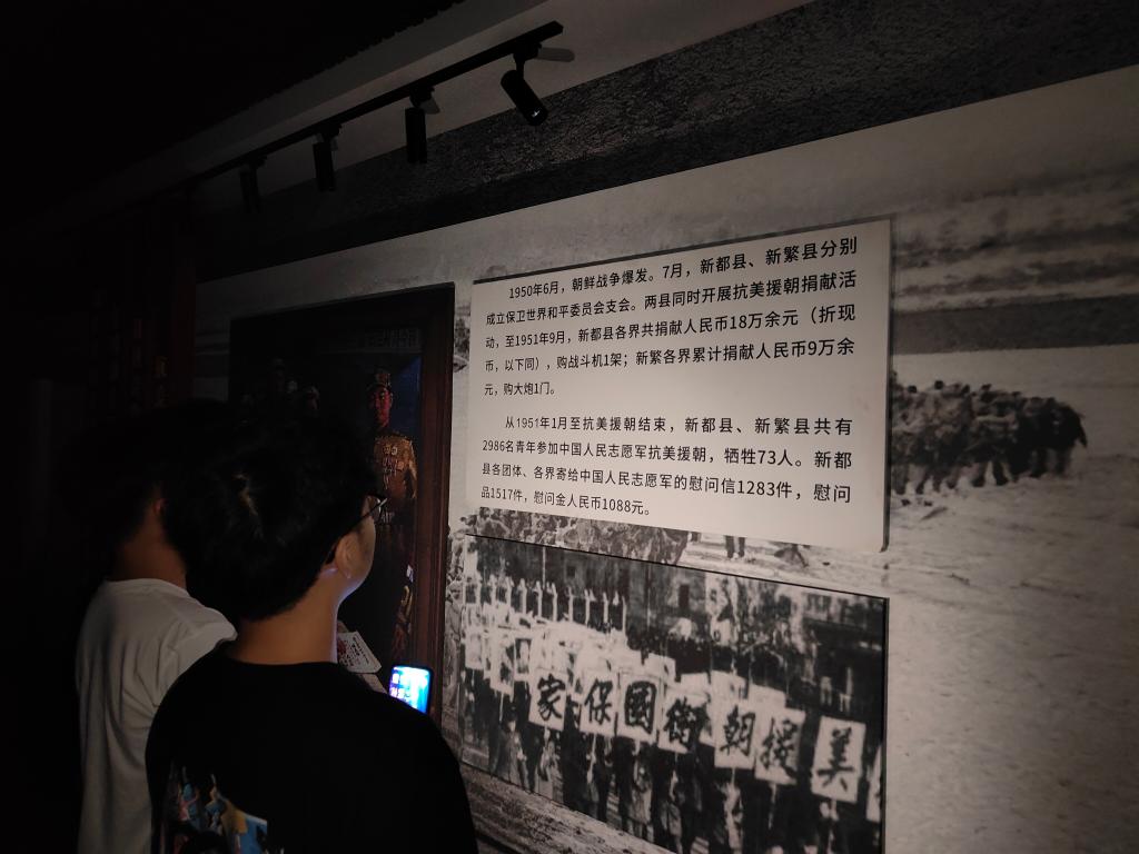 7月1日清晨,志愿者们的任务是参观新都区烈士陵园,学习烈士事迹和感悟烈士精神。志愿者们首先都站在入党誓词前面,默念入党誓词。随后,志愿者们注意到在陵园入口左侧,有解放后的烈士事迹展览,志愿者纷纷拿起纸笔记录烈士事迹,为之后的讲解工作做准备。最后大家来到了新都区烈士馆,当天由于电力系统故障,新都区烈士纪念馆内部漆黑一片,队员们都自发举起手机的照明,了解新都区所发生的革命故事。
