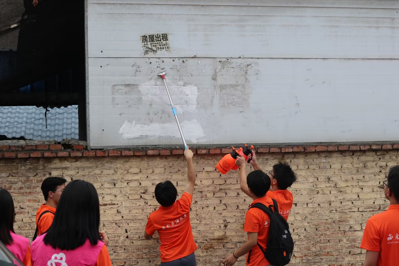 图1团队成员清理墙壁上的广告