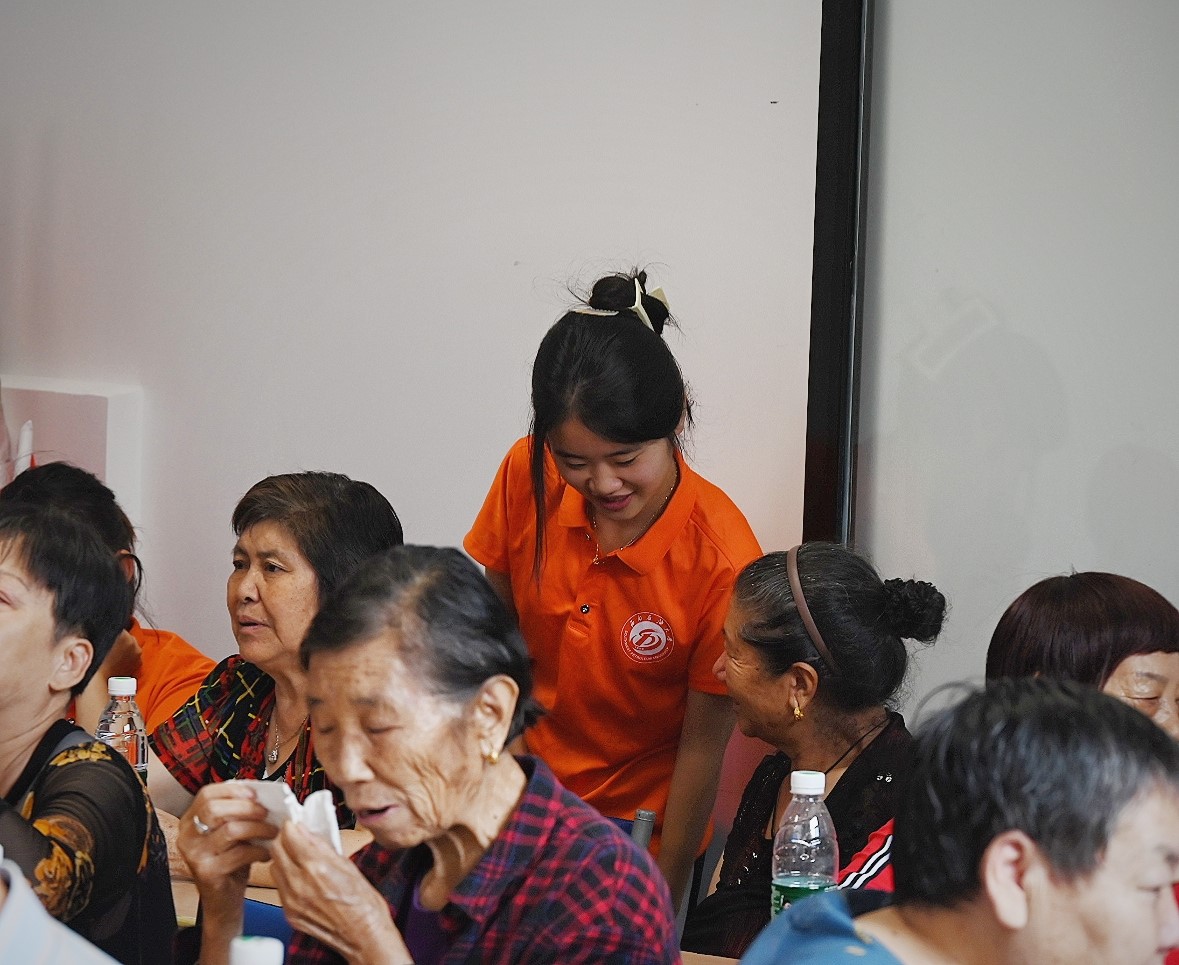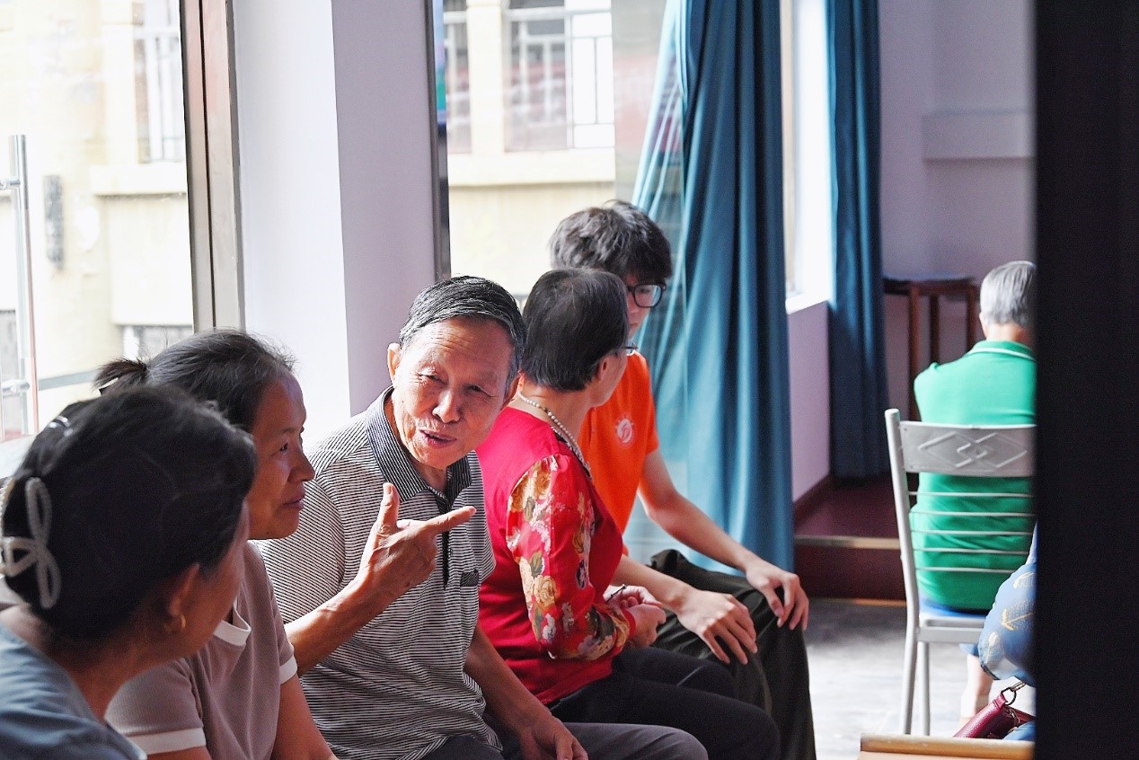 听到有大学生要来开展健康宣讲的消息,许多老人高兴不已。一位87岁的奶奶拉着实践队队员的手说:“前几天就听说大学生要来给我们讲课,盼了你们好久啦!”她说话声音十分洪亮,布满皱纹的脸上有一双炯炯有神的眼睛。