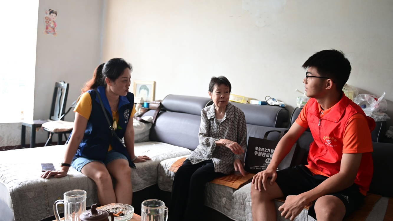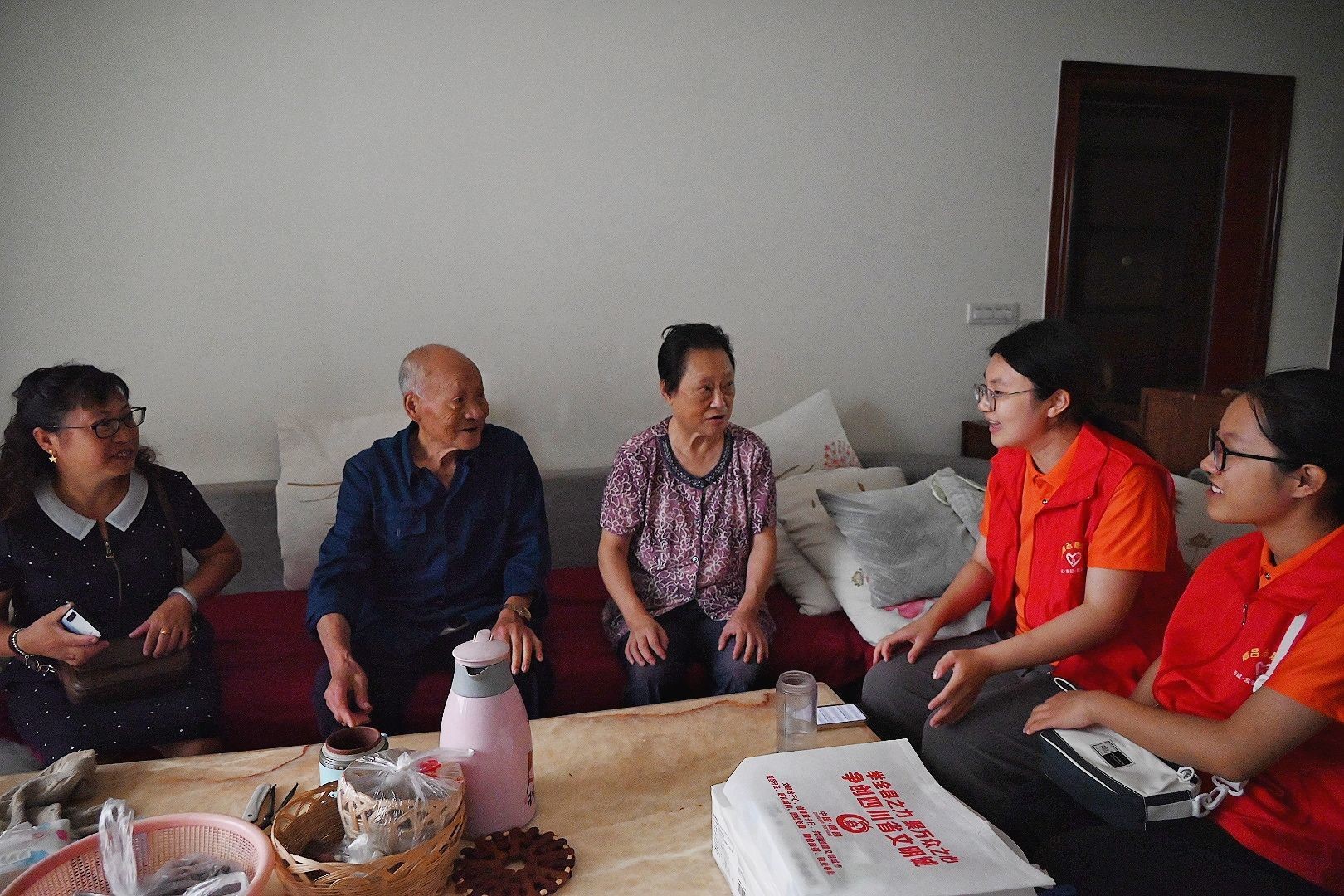 宣讲结束后,实践队员们分成四组,与社区工作人员一同走进了12户老人家中,送上诚挚的祝福和热情的关怀,老人们似乎被队员们的朝气和活力感染,谈吐间仿佛都年轻了几岁。