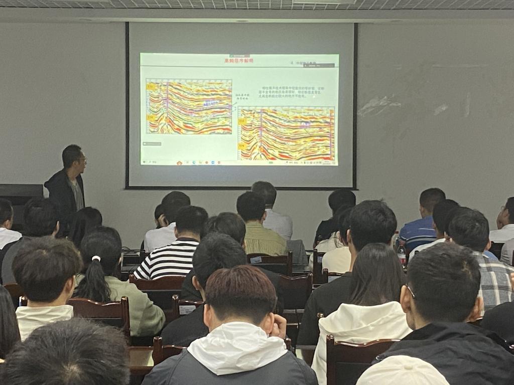 本次讲座以《地震储层预测中几个基本问题的讨论》为题。报告主要围绕以下几个问题展开:1、地震沉积中高频层序解释的问题;2、岩性圈闭的刻画问题;3、叠前反演中密度反演的问题;4、各向异性中储层成像的问题。讲座中刘力辉教授提出:层序地层级次解释的难点是地震同相轴对应长旋回、中旋回和短旋回不同级次的界面,年代意义逐级下降、岩性意义逐级增强。现实中长旋回界面等时性好,手工好追踪。中旋回等时性变差,有些不好追踪。短旋回等时性差无法追踪。但其对应于中、短旋回的高频层序解释在沉积分析、储层预测及岩性圈闭边界分析中具有很大的现实意义。最后,刘力辉教授与同学们一起交流探讨,并解答了同学们提出的相关问题。