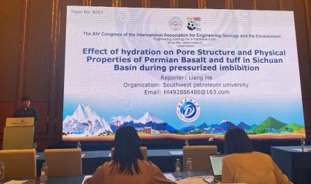 我院蒙承、何亮、孟凡、柏爱川、么勃卫等博士参会并做口头汇报,汇报主题涵盖了岩体工程地质力学、工程地质新技术、地球深部资源与能源开发、深部采矿与储能工程地质等多个领域,展示了我院的工程地质领域的最新研究进展与突破,邱鹏博士就铁路隧道有害气体的研究方向作了展板,向业界展示了我院在地球科学专业方面的最新科研成果。
