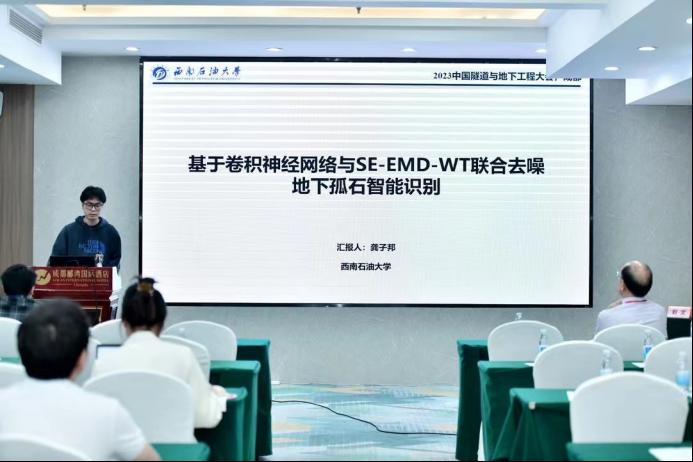 我院硕士生龚子邦、陈霖、任伟及刘瑜志参加了此次会议并进行了分会场学术报告。龚子邦作了“基于卷积神经网络与SE-EMD-WT联合去噪地下孤石智能识别”的报告,论证了基于香农熵理论的联合去噪方法的可行性与卷积神经网络智能识别地下不良地质体的智能方法,为盾构隧道地表探测孤石提供了新思路。陈霖作了“暗挖隧道近接既有地铁线路施工变形控制研究”的报告,论证了暗挖隧道开挖方案的可行性,优化了辅助加固措施,对控制暗挖隧道施工引起的地铁线路的变形提供了新的思路。任伟作了“长距离岩层EPB/TBM双模盾构刀具磨损特征及优化措施”报告,其研究对比分析EPB与TBM模式下滚刀的磨损特征,针对地层提出了具有针对性的滚刀减磨优化措施,提升了滚刀的使用寿命、耐磨性以及盾构机掘进效率。刘瑜志作了”超深基坑近接既有车站加固方案实测分析“的报告,提出了超深基坑近接既有车站开挖加固方案,通过现场工程监测数据,分析新建深基坑开挖对近接既有车站的影响规律,和有限元模型数值结果对比分析,对建立的数值模型的可靠性以及加固方案的有效性进行验证。汇报结束后,四位同学分别与专家学者们进行了深入交流,参会专家对研究内容提出了宝贵的意见与建议。