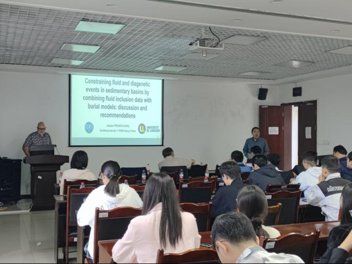 首先由李斌副教授向师生们隆重介绍了本次讲座的三位主讲人,法国国家科学中心的Professor Jacques PIRONON、Professor Raymond MICHELS和中国石油勘探开发研究院一级工程师鲁雪松。