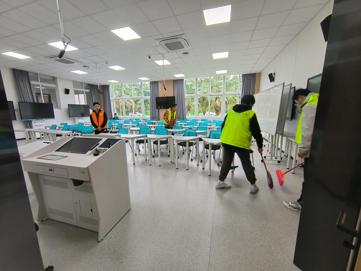十月的料峭秋风吹不灭地科院学子志愿服务的积极性。活动一经发出,同学们踊跃报名,并于活动开始前在思学楼A区大厅有序集合。工作人员分配好工作之后,志愿者们身穿马甲,在各自指定的区域内进行清扫任务。活动过程中,志愿者们逐层清扫,每一间教室都有他们辛勤劳动的身影。他们手持扫帚和簸箕,仔细搜寻,认真清扫,不放过教室和走廊的每一个角落。身着绿色马甲的志愿者们象征着地科学子积极劳动,乐于助人的精神风貌,在志愿者们的共同努力下,思学楼变得窗明几净,焕然一新。