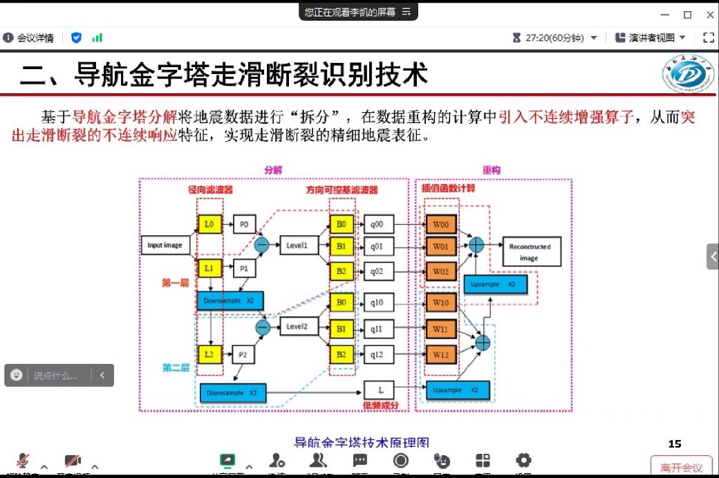 讲座伊始,李凯博士首先为同学们介绍了塔里木盆地超深层海相碳酸盐岩的勘探概况及储集空间类型等相关内容。从地震正演响应特征分析出发,提高了走滑断裂以及缝洞型储层的识别精度,提出了一系列实现走滑断裂—缝洞储集体精细描述的新方法,并以实例分析了新方法的优势。