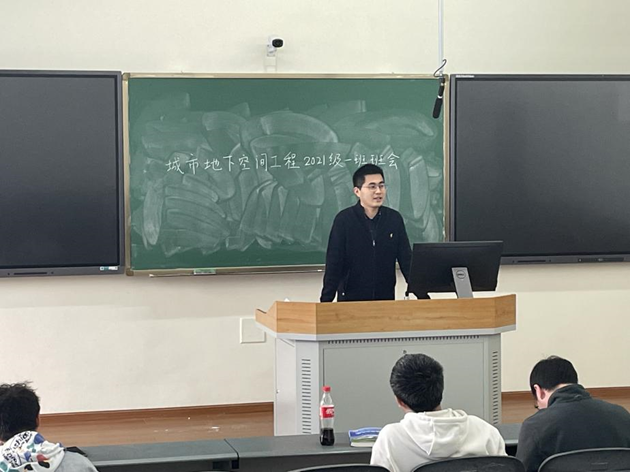 2023年11月7日,地科院城市地下空间工程专业2021级一班班会于明辨楼C304顺利开展,本次班会为学业导师见面会,新任学业导师田健秋与地空一班学生首次见面并进行交流。