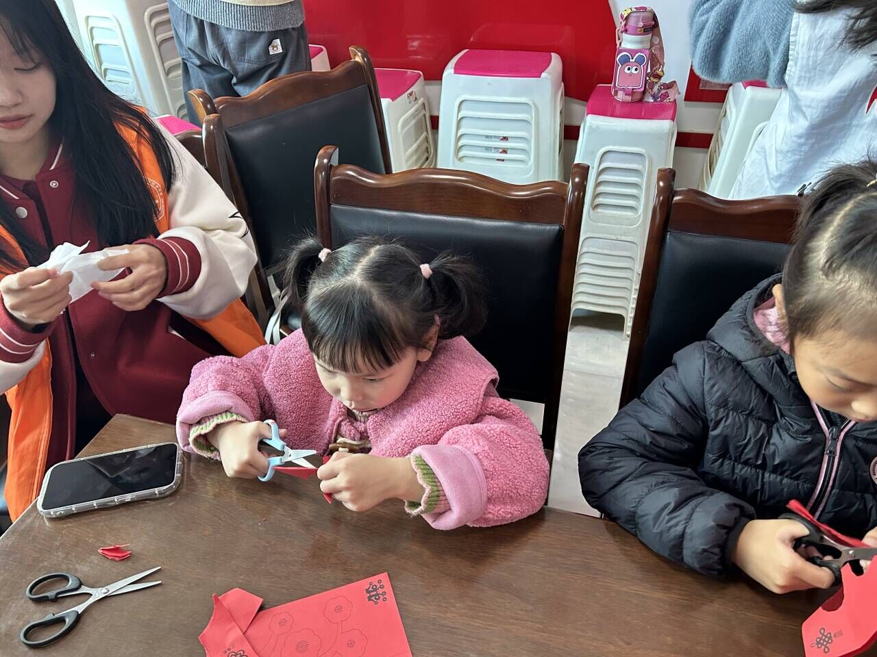 2023年11月19日上午8点30分,地科院青志协志愿者们到达社区,开展活动前的准备工作。9点左右家长们带领小朋友们陆续到场,在志愿者们的安排下,小朋友们有序入座。9点30分,活动正式开始,两名志愿者先为小朋友们介绍了中国剪纸文化的历史,小朋友们认真倾听,勇于提问,现场氛围和谐有序,紧接着,一名志愿者向小朋友们讲解如何正确剪纸,并鼓励小朋友打开想象力,勇于创作。于是在志愿者的带领下,小朋友们开始了他们的剪纸创作。志愿者们坐在小朋友们身旁,为他们讲解如何裁剪,小朋友们动手实践,完成了自己的剪纸创作。在大家的欢声笑语中,本次活动圆满结束。