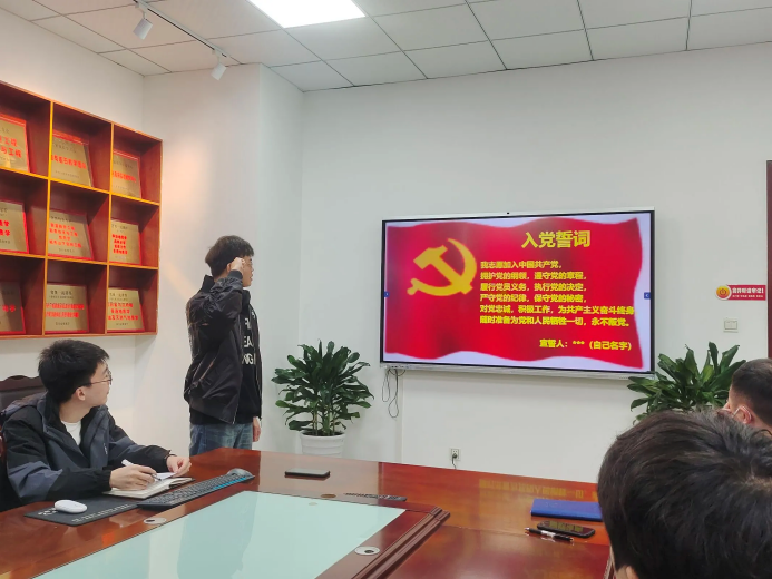 会议严格按照党支部接收预备党员的规定流程进行。会议伊始,全体成员起立奏唱国歌。随后,支部副书记宣读有关会议议程并宣布此次发展名单及审查结果。徐璐等两名发展对象依次向党组织汇报个人情况,并对党的认识、入党动机等加以阐述。紧接着,申请人回避,由正式党员采用无记名投票的方式投票表决,一致同意徐璐等两位同志申请。