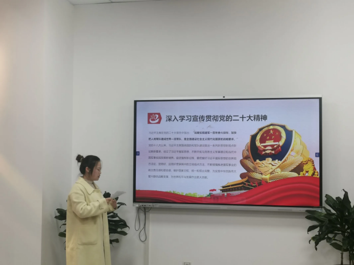 支部同志罗长琴、曹金桃、韩凤丽依次分享了“实现建军一百年奋斗目标,开创国防和军队现代化新局面”、“推进国家安全体系和能力现代化,坚决维护国家安全和社会稳定”“推动绿色发展,促进人与自然和谐共生”主题微党课,以讲促学,不断加强支部的政治理论学习。