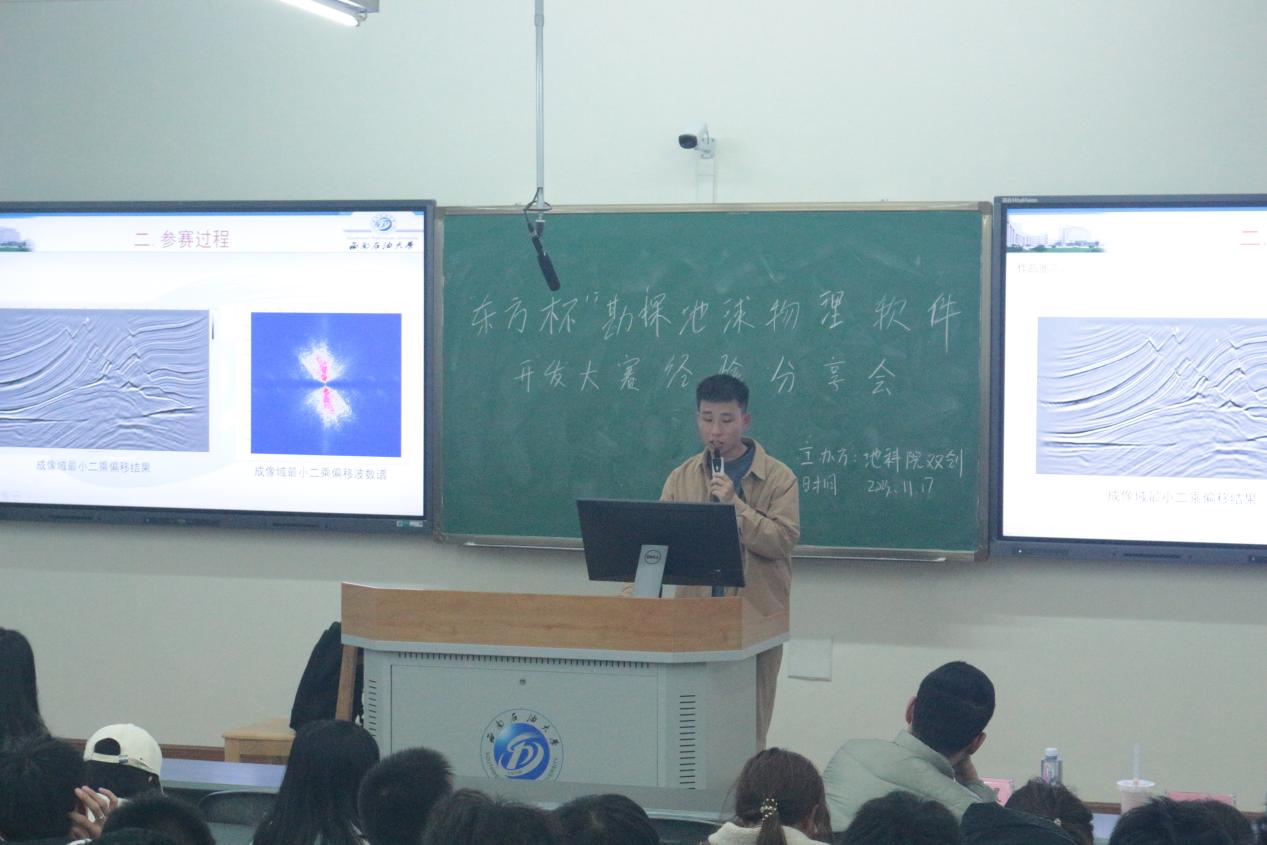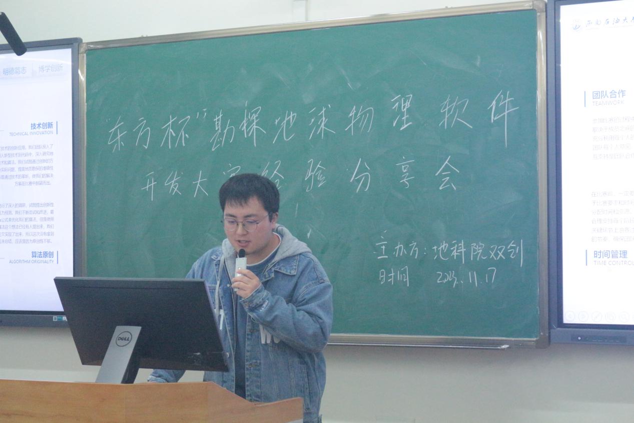 为加强本科同学对相关学科竞赛的了解,同时宣传学科竞赛的重要性,并为下一届“东方杯”全国大学生勘探地球物理软件开发大赛做宣传。地科院双创中心于11月17日晚在明辨楼c302举行了“东方杯”全国大学生勘探地球物理软件开发大赛经验分享会。