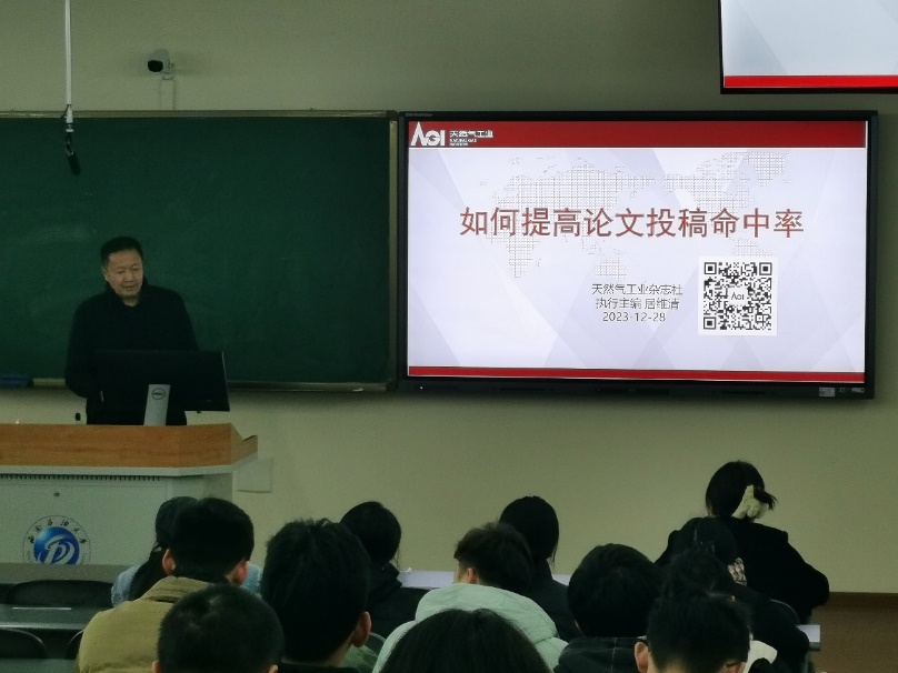 居维清教授是《天然气工业》执行主编,副编审,同时兼任中国科技期刊编辑学会理事、中国石油学会天然气专业委员会委员、四川省期刊协会副会长、四川省科技期刊编辑学会名誉副理事长。担任《特种油气藏》《天然气勘探与开发》《天然气技术与经济》编委、四川省期刊专家委员会委员。居教授拥有丰富的科技论文写作以及审查经验,站在不同的视角解读了如何提高科技论文投稿命中率。作为我校毕业学子,居教授毫不吝啬的与大家分享了自己从业多年以来的经验,以其生动形象的语言带领大家深刻理解如何进行科技论文写作与投稿。
