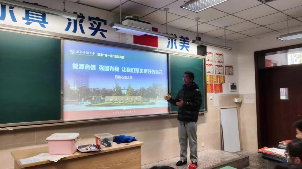 1月25日,地球科学与技术学院“通锦程”青春分享小队赴成都七中万达学校通锦校区开展“感恩高中母校,分享石大青春”活动。本次宣讲覆盖成都七中万达学校通锦校区高二年级3个班级。